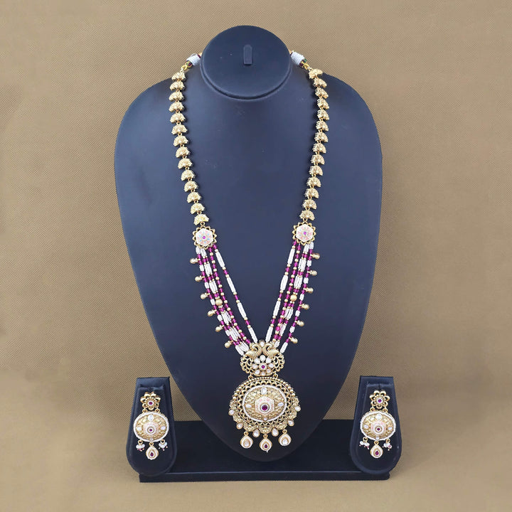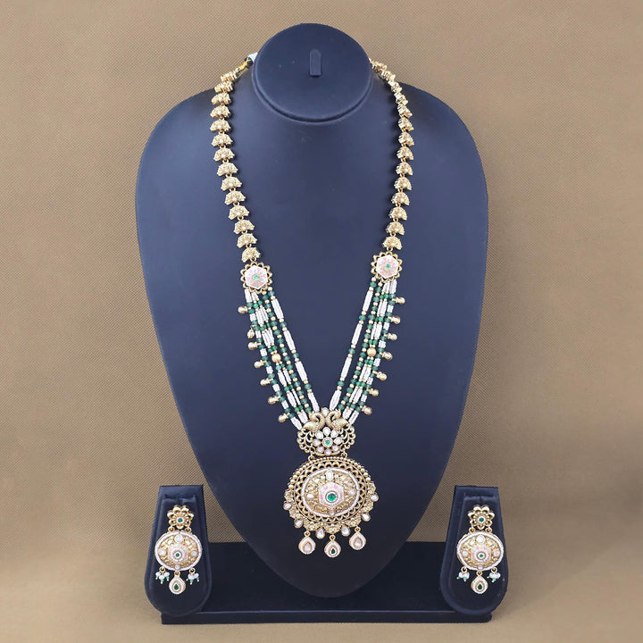 Weight: 131.0 Grams, Pendant Height = 100 mm || Width = 60 mm,Earring Height = 60 mm || Width = 28 mm,Length = 20 Inch,Gold Plating,Antique Pendant Set