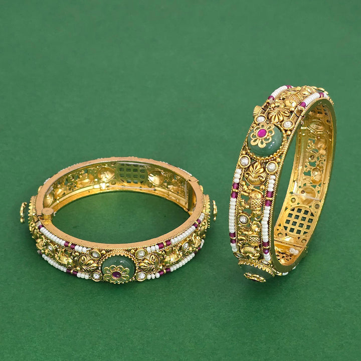 Weight: 93.0 Grams, 2 Pc Bangle,Openable Bangle,Gold Plating,Antique Bangle