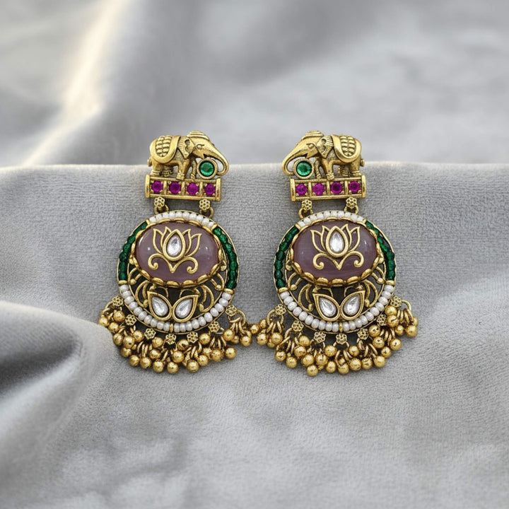 Weight: 30.0 Grams, Height = 55 mm || Width = 36 mm,Elegant Look,Gold Plating,Antique Earring