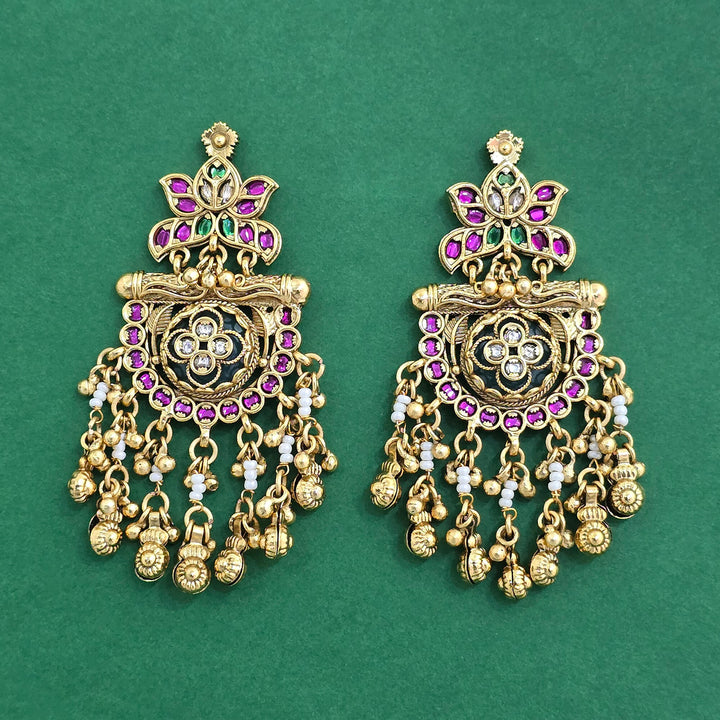 Weight: 34.0 Grams, Height = 72 mm || Width = 40 mm,Bollywood Look,Gold Plating,Antique Earring