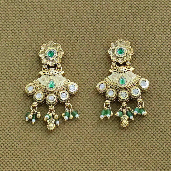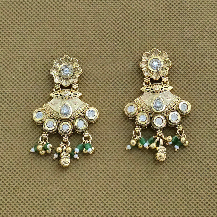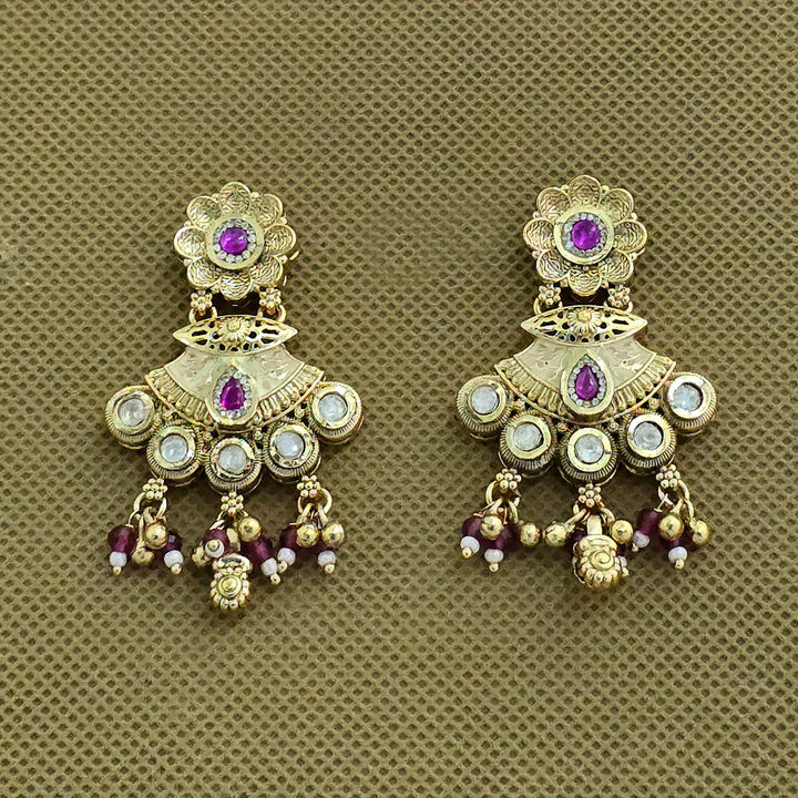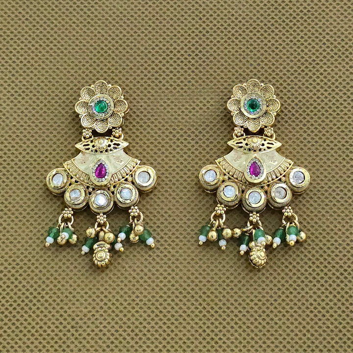Weight: 23.0 Grams, Height = 50 mm || Width = 30 mm,Meenakari Earring,Matte Gold Plating,Antique Earring