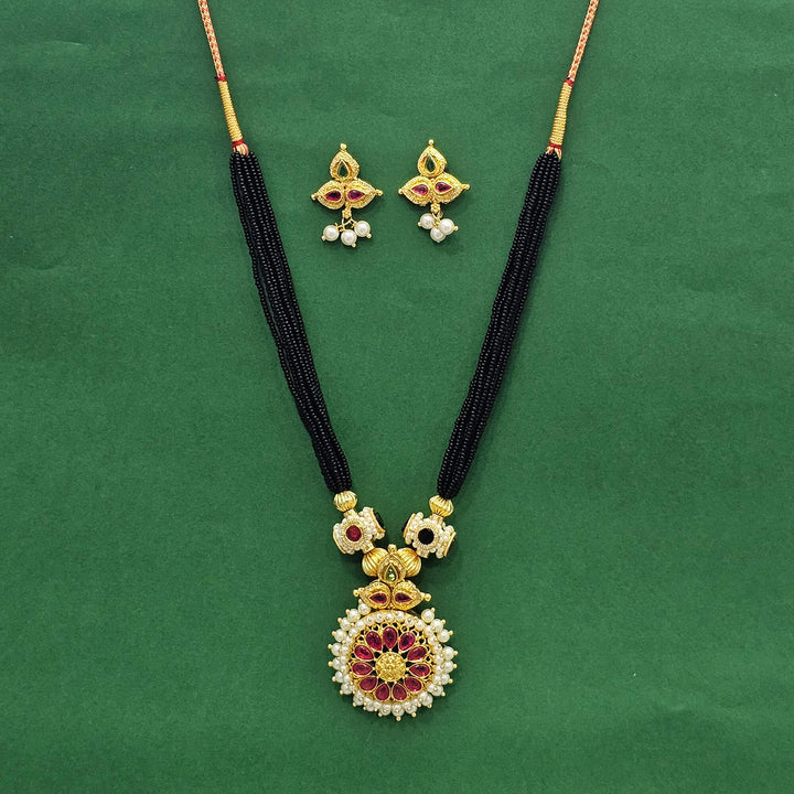 Weight: 52.0 Grams, Pendant Height = 58 mm || Width = 42 mm,Earring Height = 35 mm || Width = 24 mm,Regular Size And Adjustable,Gold Plating,Antique Mangal Sutra