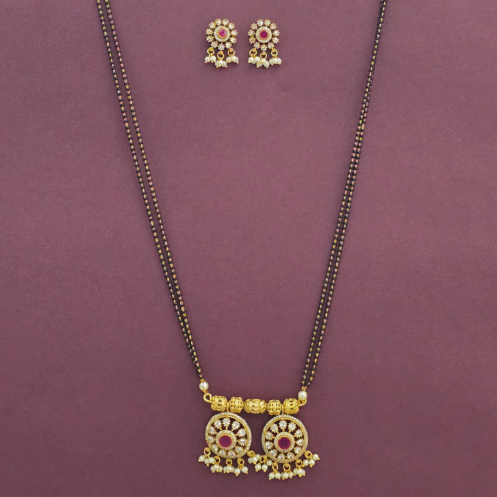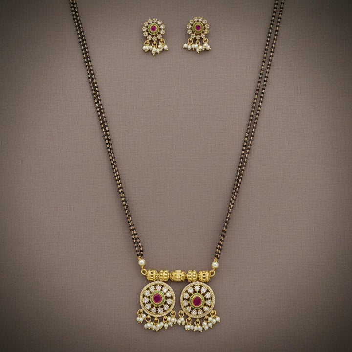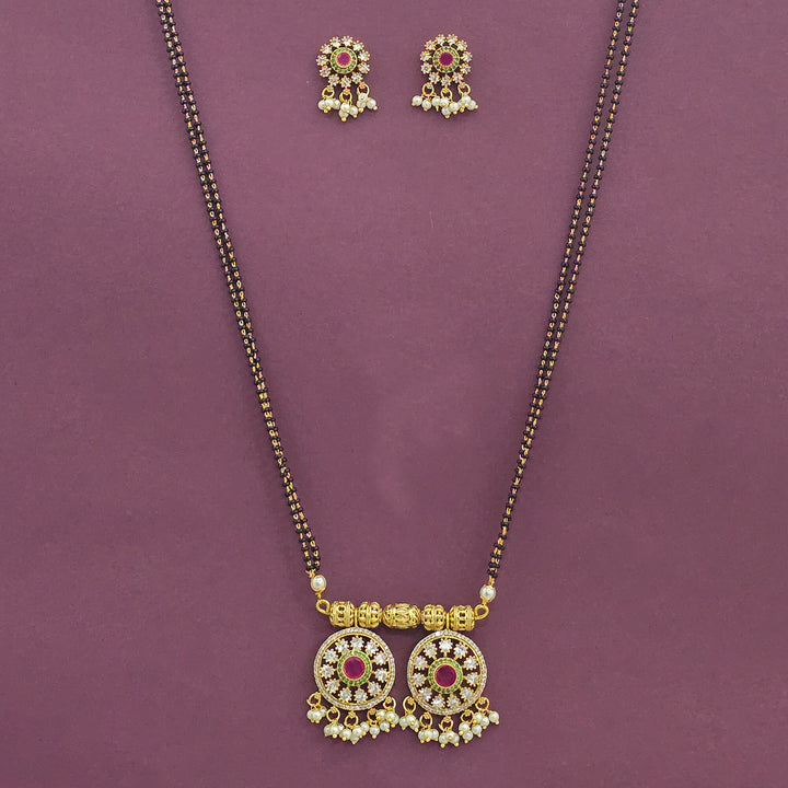 Weight: 34.0 Grams, Pendant Height = 44 mm || Width = 54 mm,Earring Height = 26 mm || Width = 20 mm,Chain - 24 Inch,Gold Plating,Antique Mangal Sutra