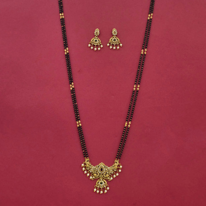 Weight: 33.0 Grams, Pendant Height = 45 mm || Width = 65 mm,Earring Height = 35 mm || Width = 25 mm,Length = 24 Inch,Gold Plating,Antique Mangal Sutra