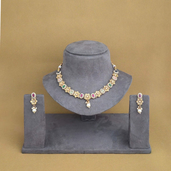 Simaya Jewels offers an exclusive collection of finest quality crafted Fashion Jewellery in various colors. We make sure that our collection of Indo Western Stone Necklace With Gold Plating are beautiful, elegent & will surely galvanize you, becauseour products are unique, comfortable, fashion forward & very popular for the rich look. Base Metal of our product is Alloy. We pack all the products using quality packaging material to ensure safe and secure transportation.s. We make sure that our collection of Indo Western Stone