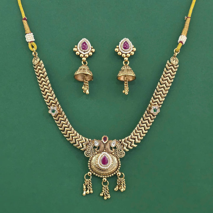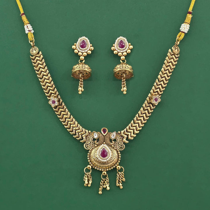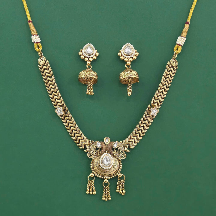 Weight: 52.0 Grams, Earring Height = 45 Mm || Width = 17 Mm,Regular Size And Adjustable,Elegant Look,Gold Plating,Antique Necklace Set