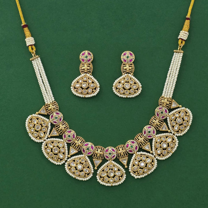 Weight: 73.0 Grams, Earring Height = 37 Mm || Width = 25 Mm,Regular Size And Adjustable,Classic Design,Gold Plating,Antique Necklace Set