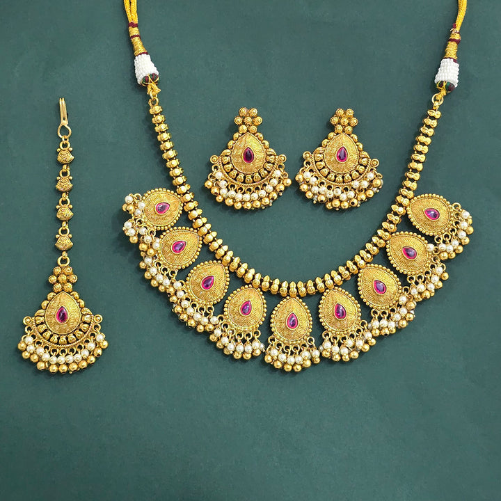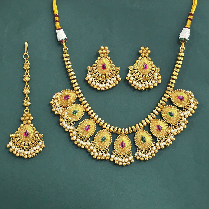 228203 Antique Moti Necklace With Gold Plating