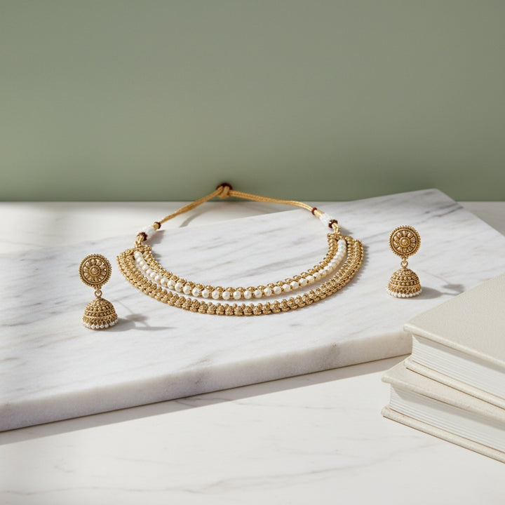 228375 Antique Moti Necklace With Gold Plating