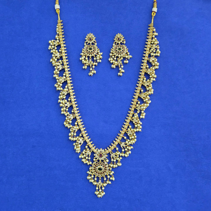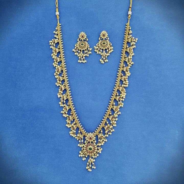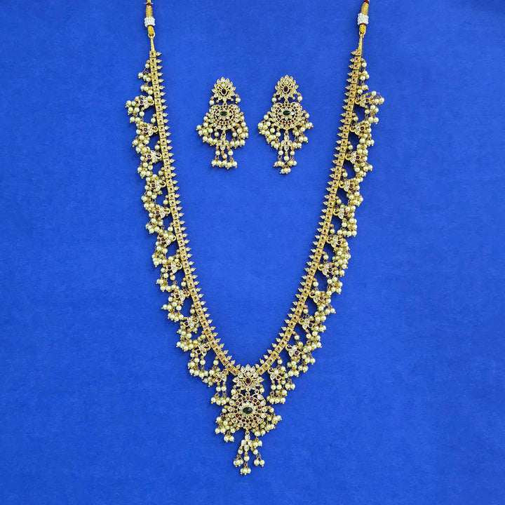 Weight: 108.0 Grams, Length = 18 Inch,Earring Height = 60 mm || Width = 42 mm,Long Necklace,Gold Plating,Antique Necklace Set