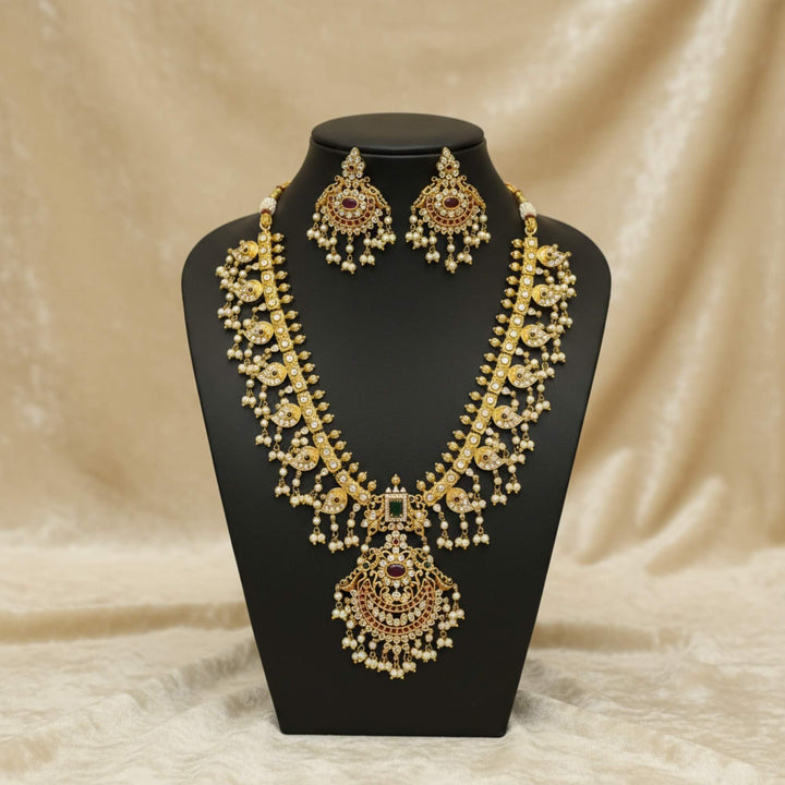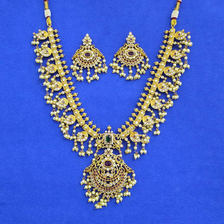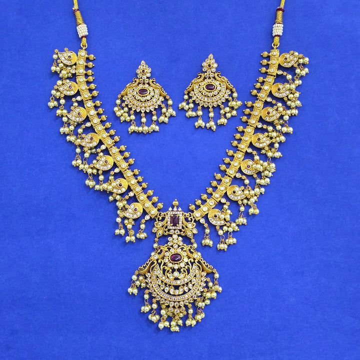 Weight: 100.0 Grams, Earring Height = 45 mm || Width = 40 mm,Regular Size 12 Inches With Adjustable Option,Peacock Necklace,Gold Plating,Antique Necklace Set