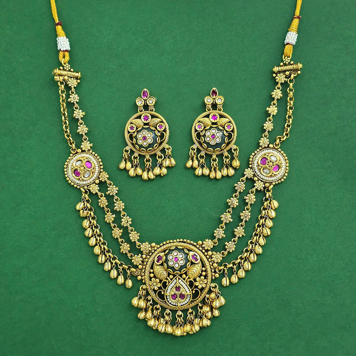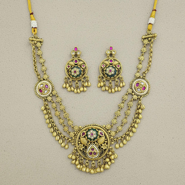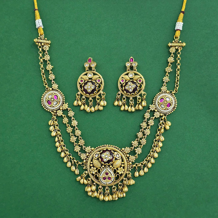 Weight: 68.0 Grams, Earring Height = 50 mm || Width = 32 mm,Regular Size And Adjustable,Elegant Look,Gold Plating,Antique Necklace Set