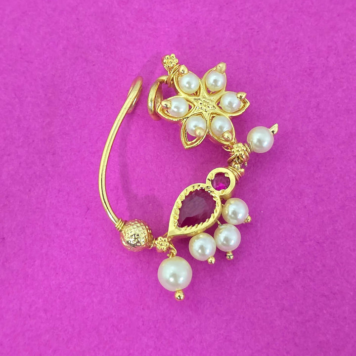 226908 Antique Moti Nose Ring With Gold Plating