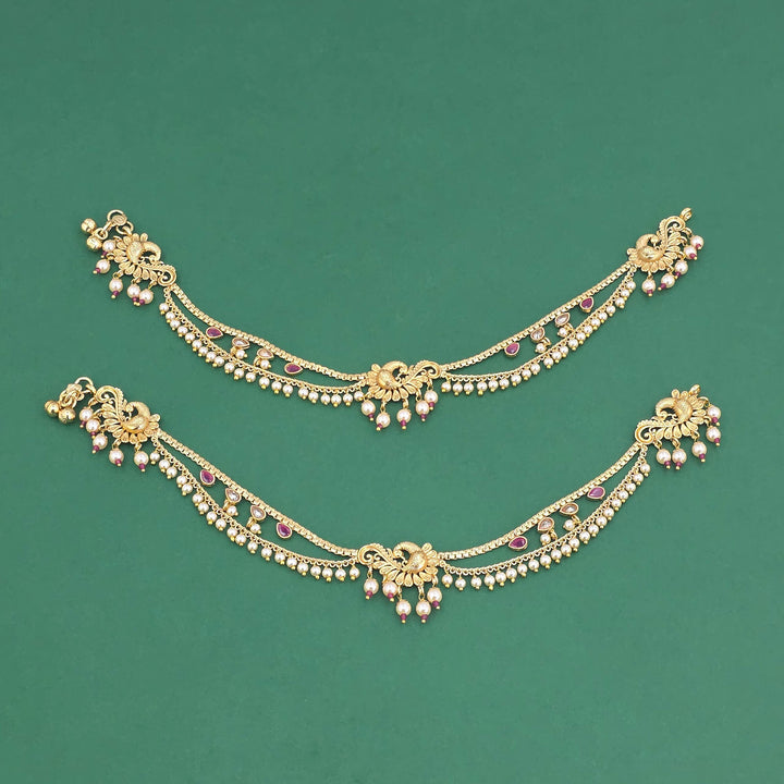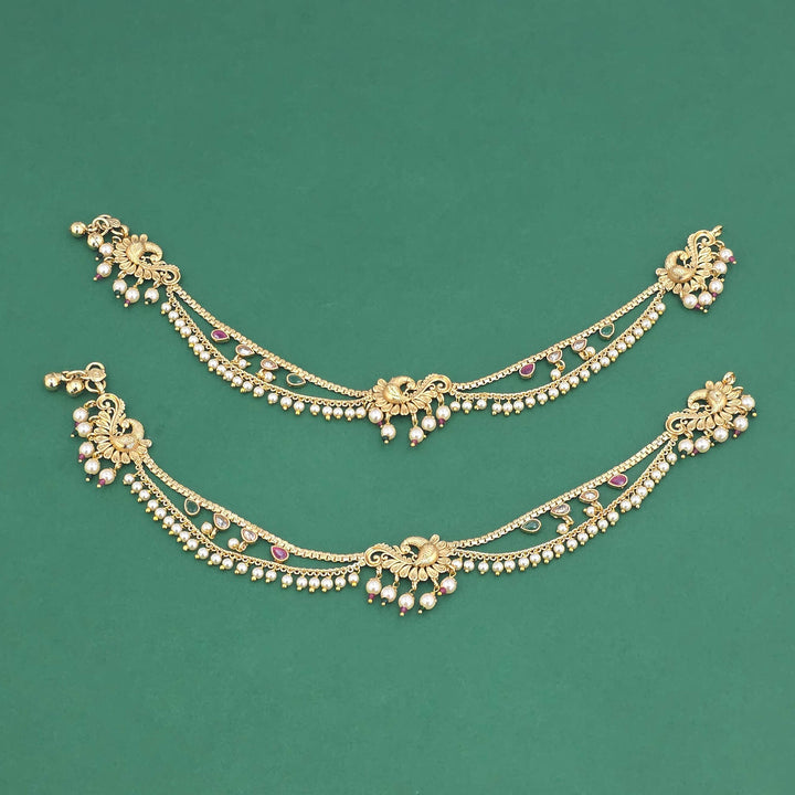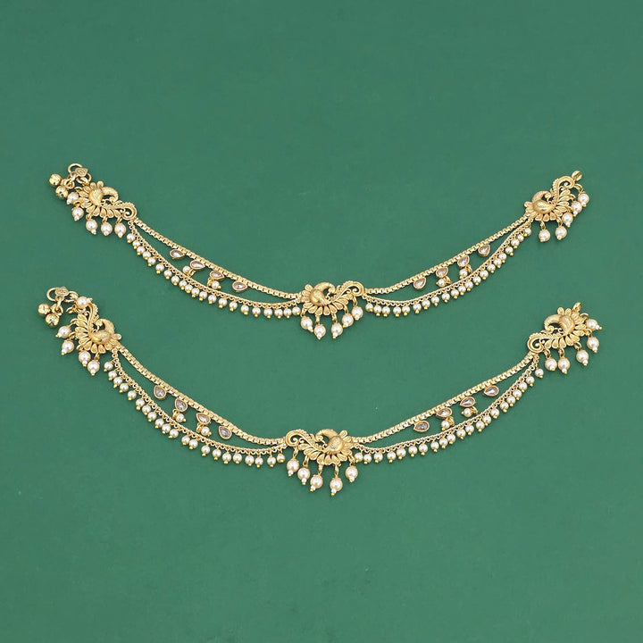 229166 Antique Moti Payal With Gold Plating