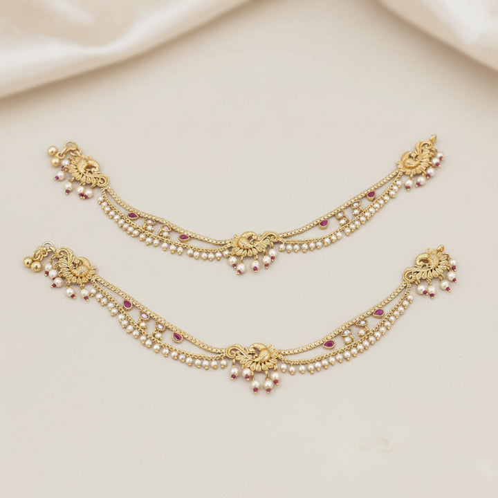 Weight: 46.0 Grams, Length = 10 Inch,Openable Payal,Peacock Design,Gold Plating,Antique Payal