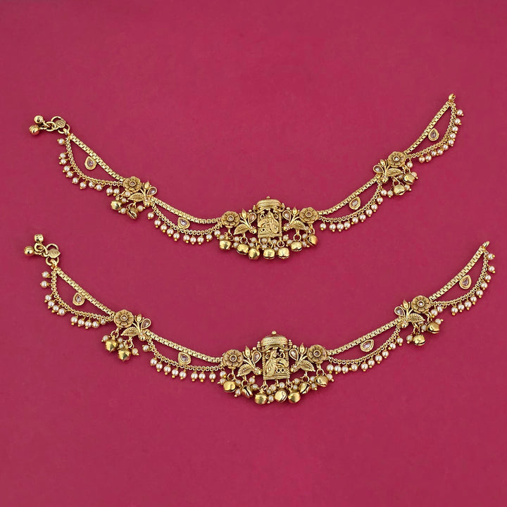 Weight: 55.0 Grams, Length = 10 Inch,Trendy Look,Gold Plating,Antique Payal
