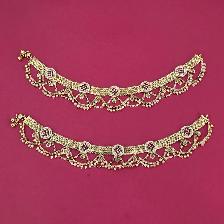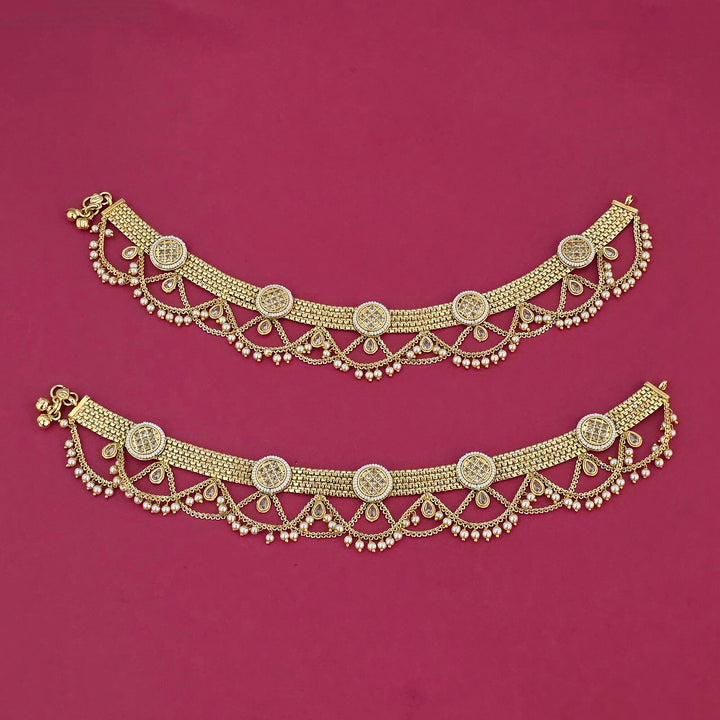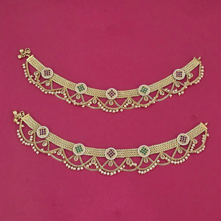 229169 Antique Moti Payal With Gold Plating