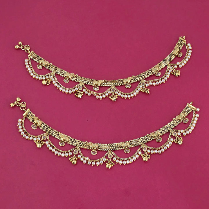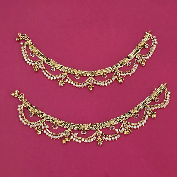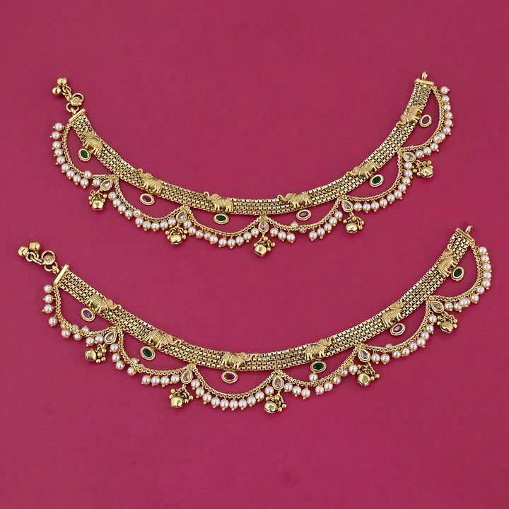 Weight: 95.0 Grams, Length = 10 Inch,Ghungru Payal,Gold Plating,Antique Payal