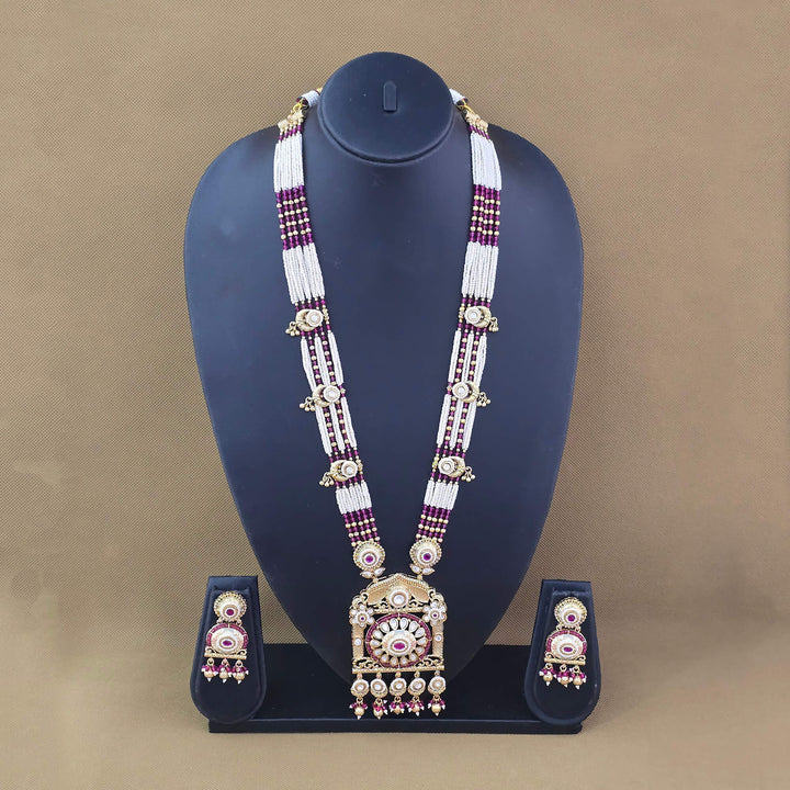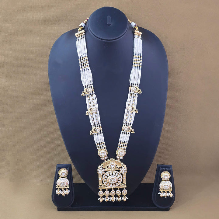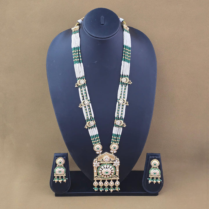 Weight: 132.0 Grams, Pendant Height = 90 mm || Width = 55 mm,Earring Height = 52 mm || Width = 28 mm,Length = 20 Inch,Gold Plating,Antique Pendant Set