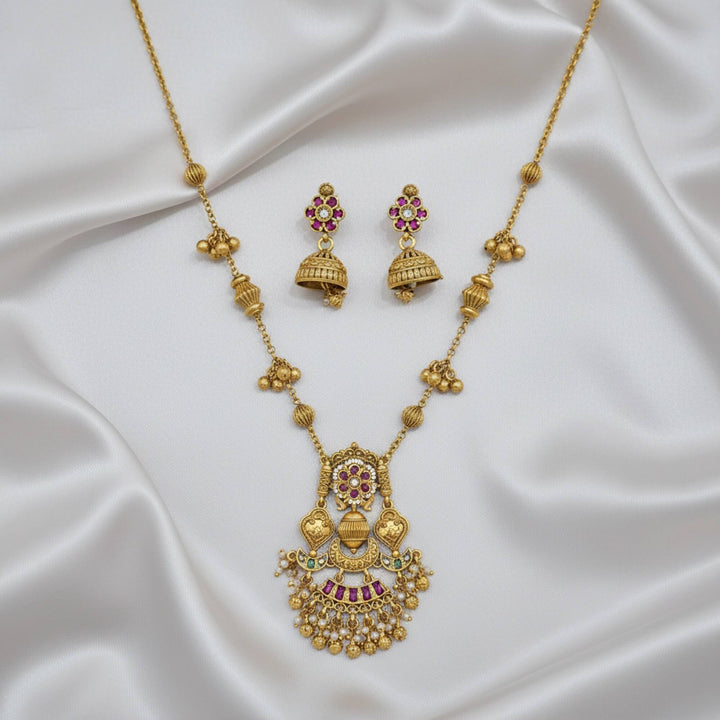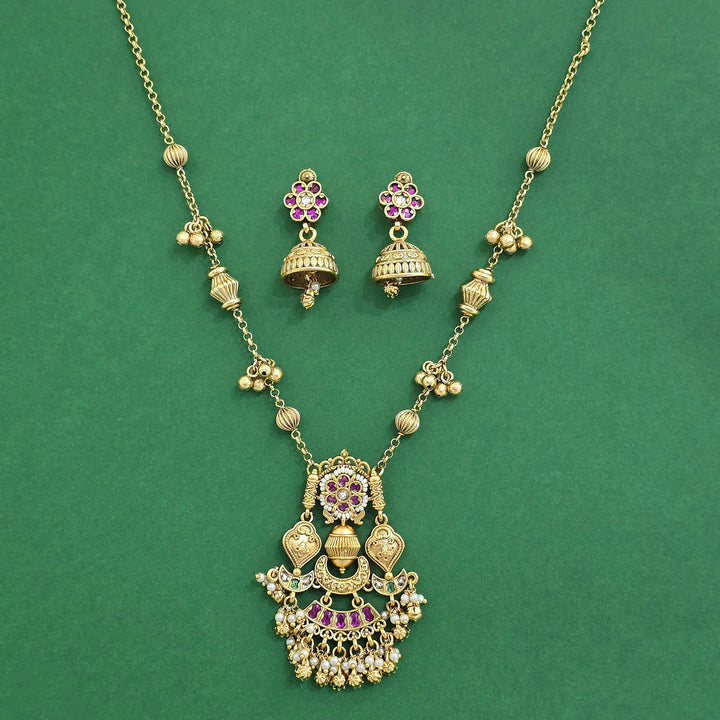 Weight: 39.0 Grams, Pendant Height = 62 mm || Width = 45 mm,Earring Height = 45 mm || Width = 20 mm,Length = 18 Inch,Gold Plating,Antique Pendant Set
