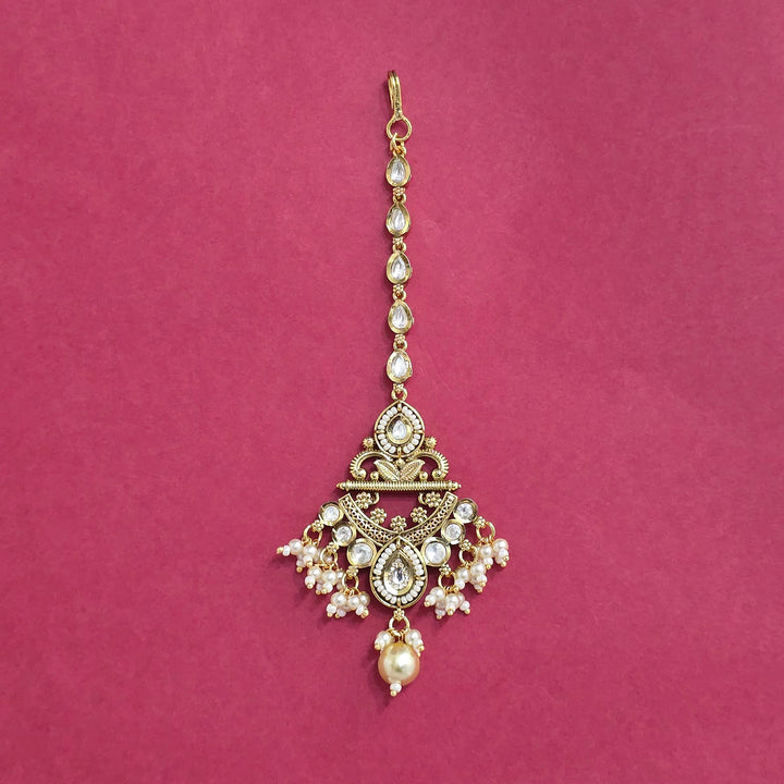 228429 Antique Moti Tikka With Gold Plating