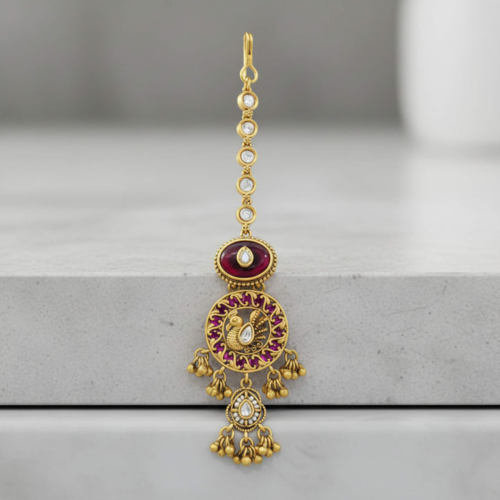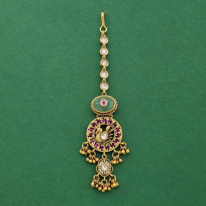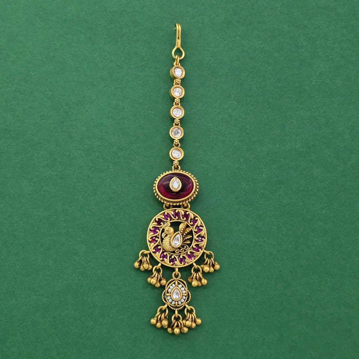 Weight: 17.0 Grams, Height = 125 Mm || Width = 35 Mm,Trendy Look,Matte Gold Plating,Antique Maang Tikka