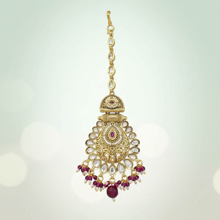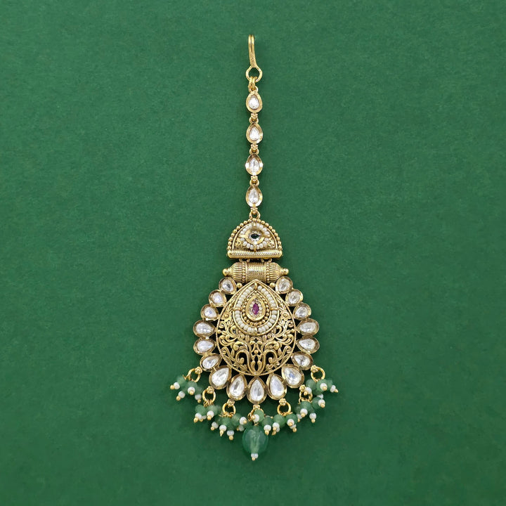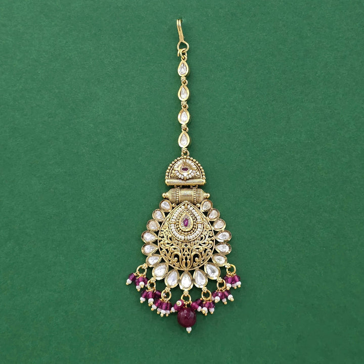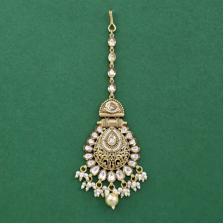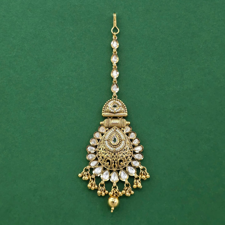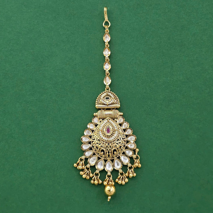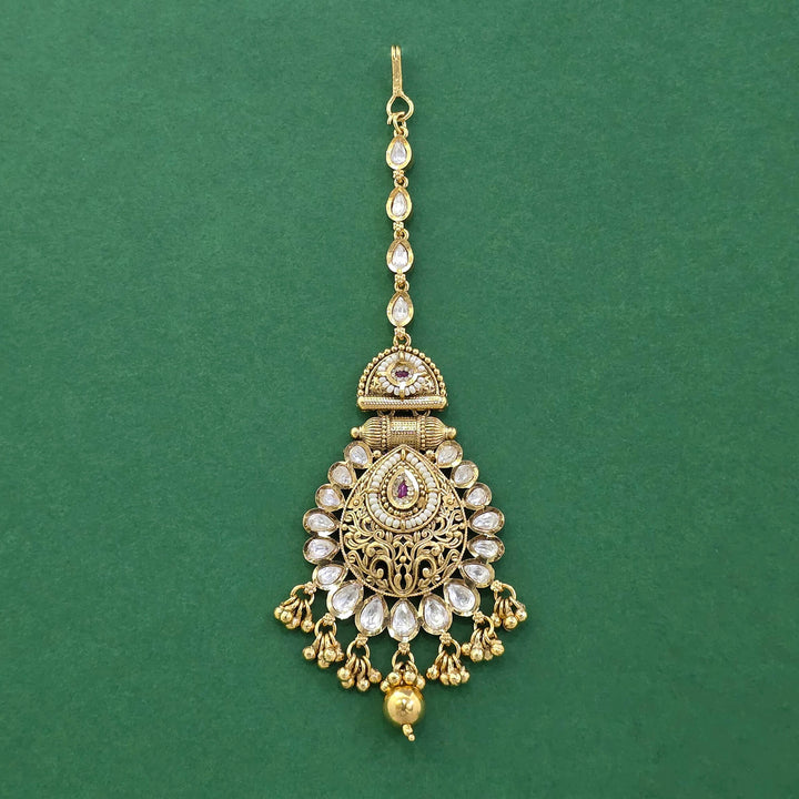 Weight: 20.0 Grams, Height = 125 Mm || Width = 50 Mm,Bollywood Look,Matte Gold Plating,Antique Maang Tikka
