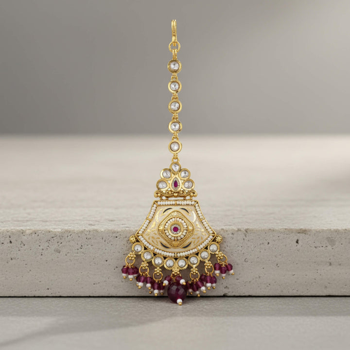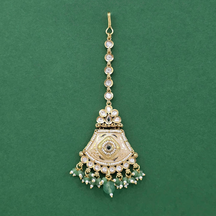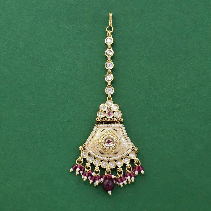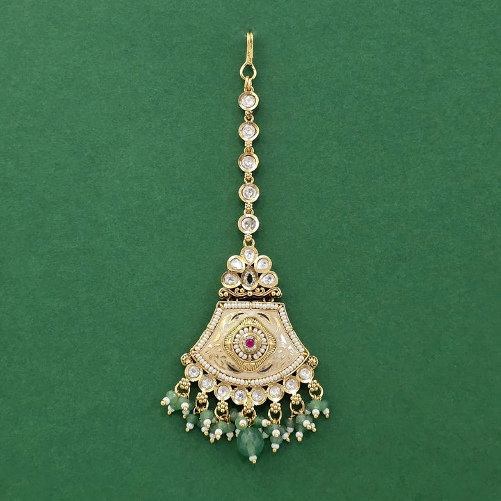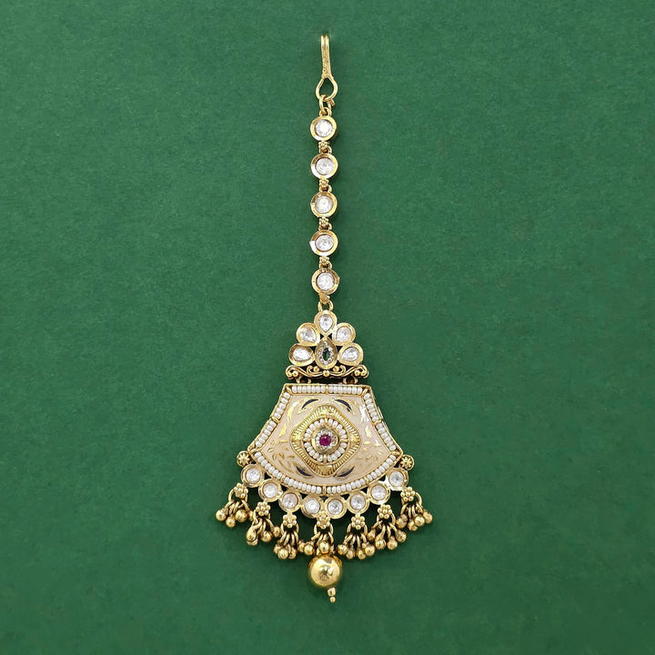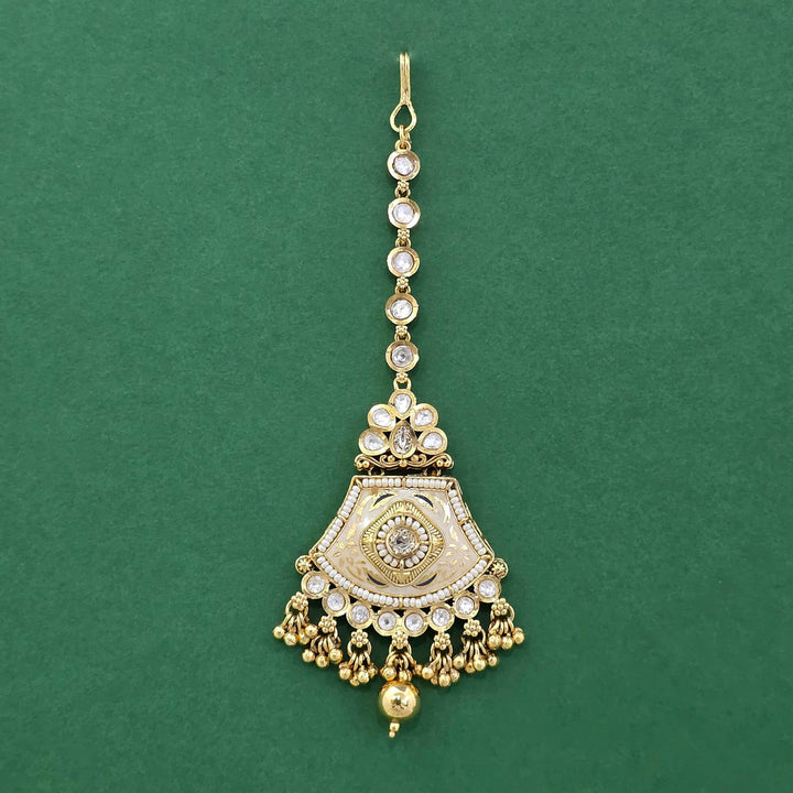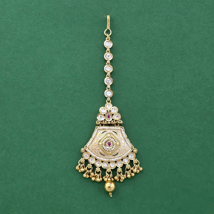 229481 Antique Moti Tikka With Matte Gold Plating