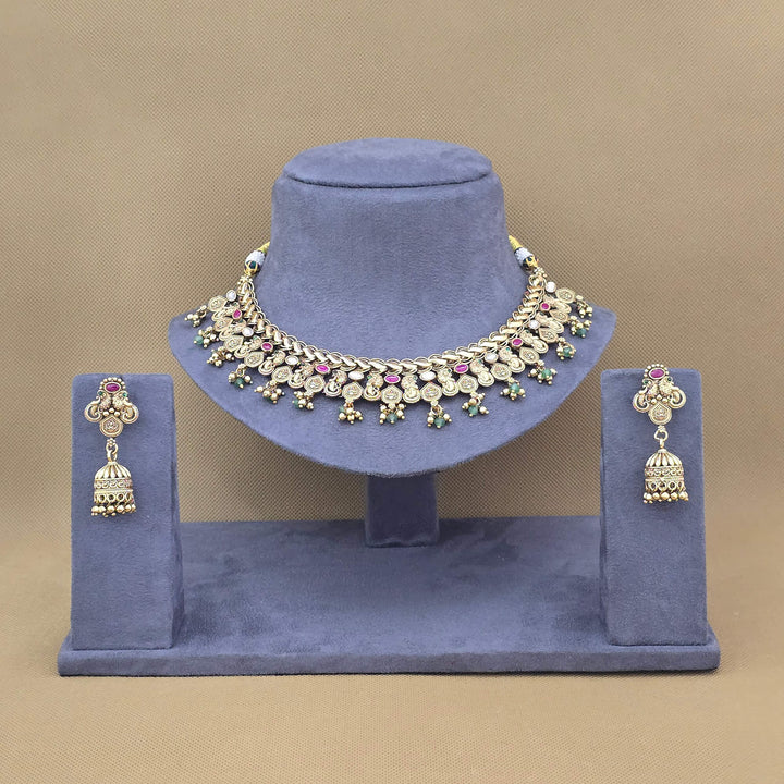 Weight: 74.0 Grams, Earring Height = 52 mm || Width = 20 mm,Regular Size And Adjustable,Elegant Look,Gold Plating,Antique Necklace Set