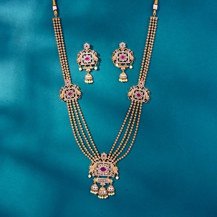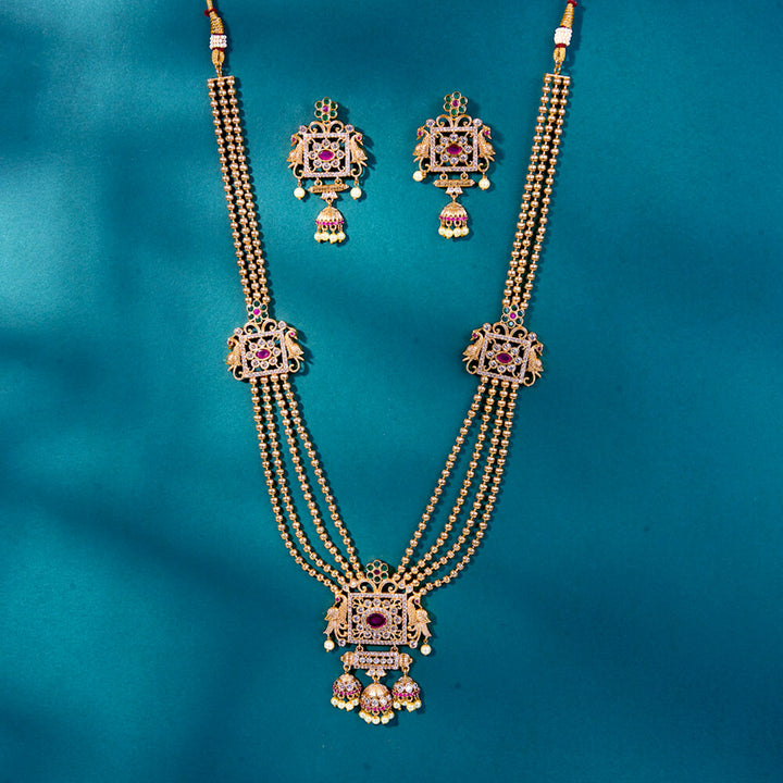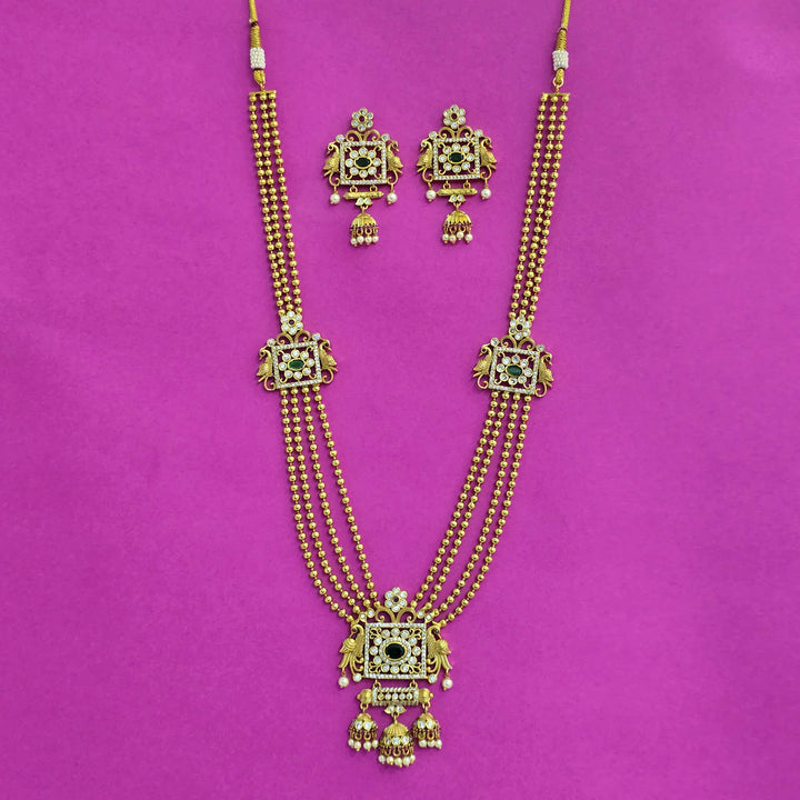 222505 Antique Long Necklace Set With Matte Gold Plating