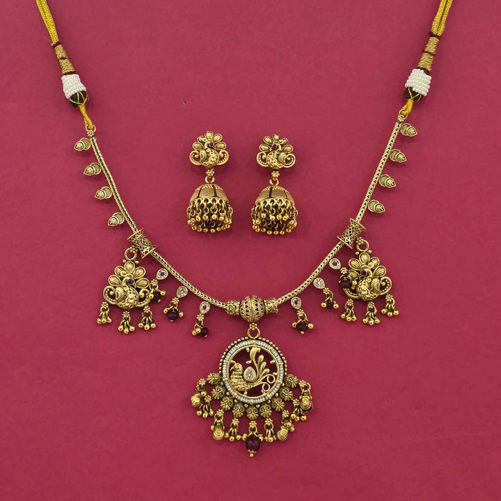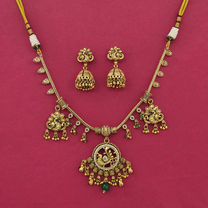 Weight: 70.0 Grams, Earring Height = 40 mm || Width = 20 mm,Regular Size And Adjustable,Latest Design,Matte Gold Plating,Antique Necklace Set