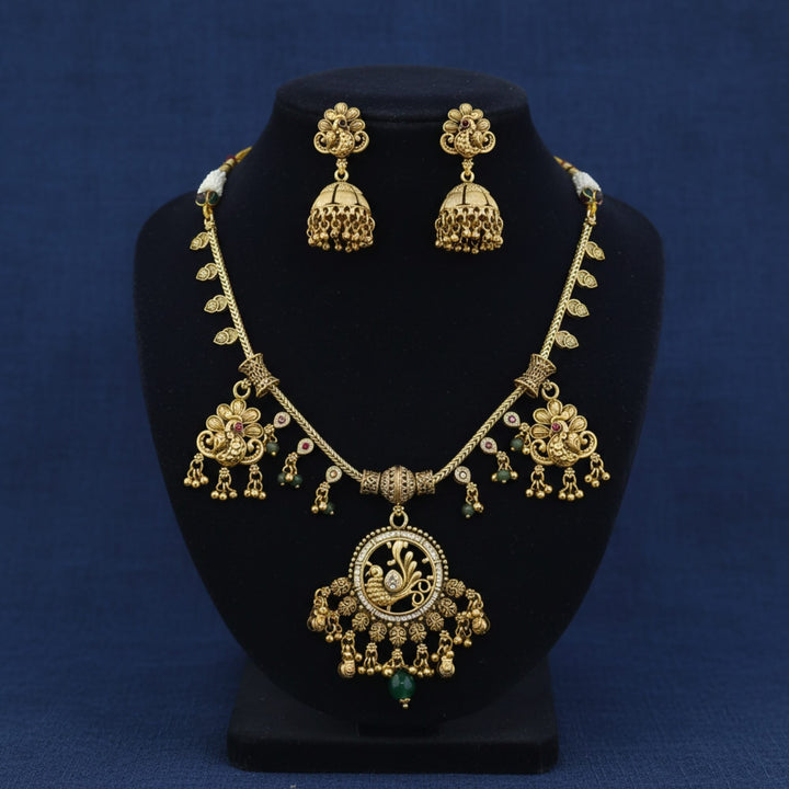 229217 Antique Peacock Necklace With Matte Gold Plating
