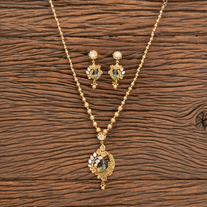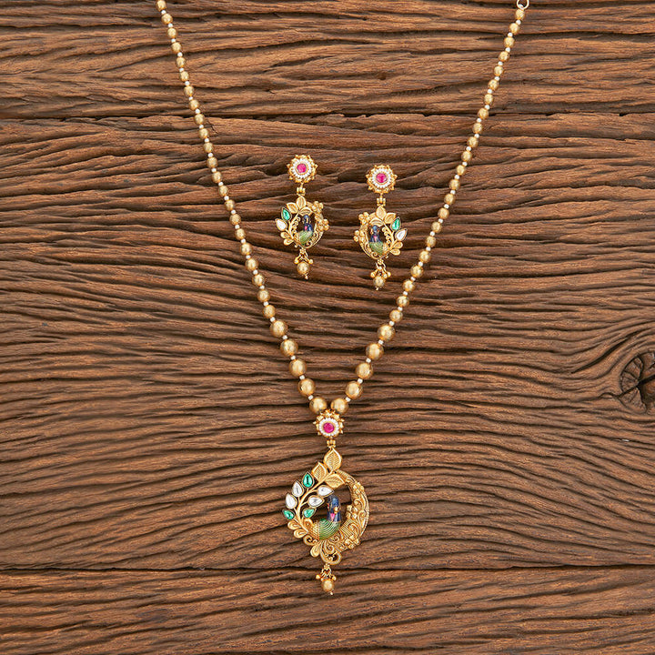 218124 Antique Peacock Pendant Set With Matte Gold Plating