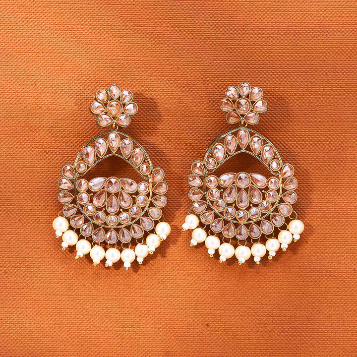 223681 Antique Pearl Earring With Mehndi Plating