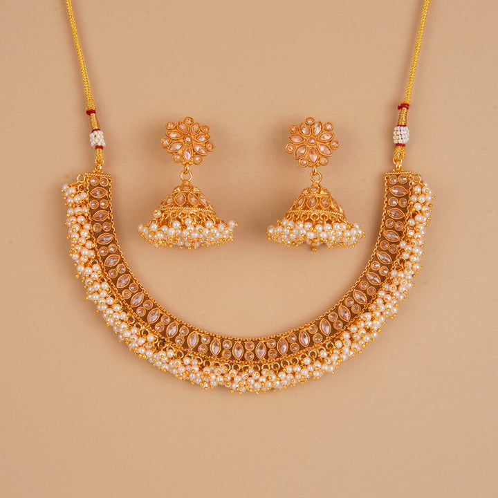 225234 Antique Pearl Necklace Set With Gold Plating