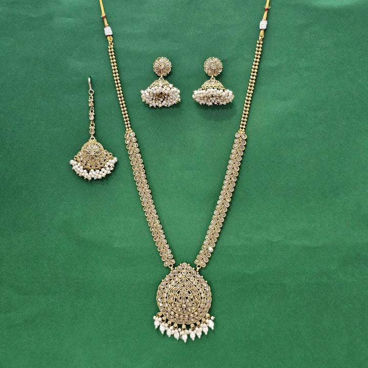 226056 Antique Pearl Necklace With Mehndi Plating
