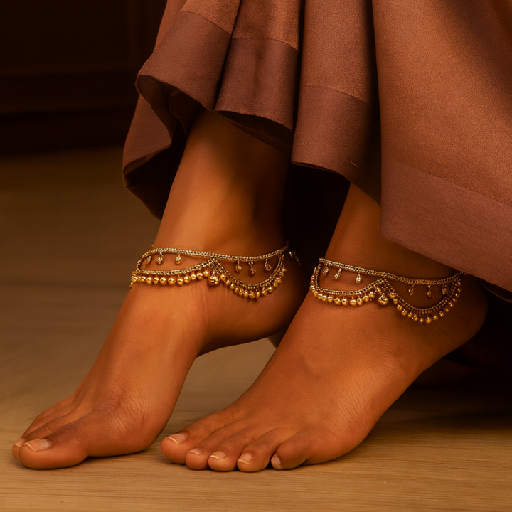 223153 Antique Pearl Payal With Gold Plating