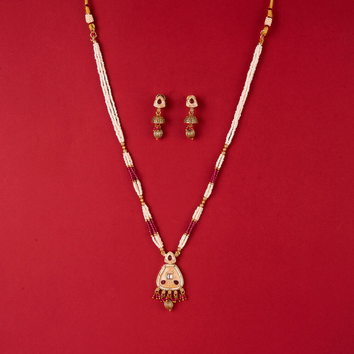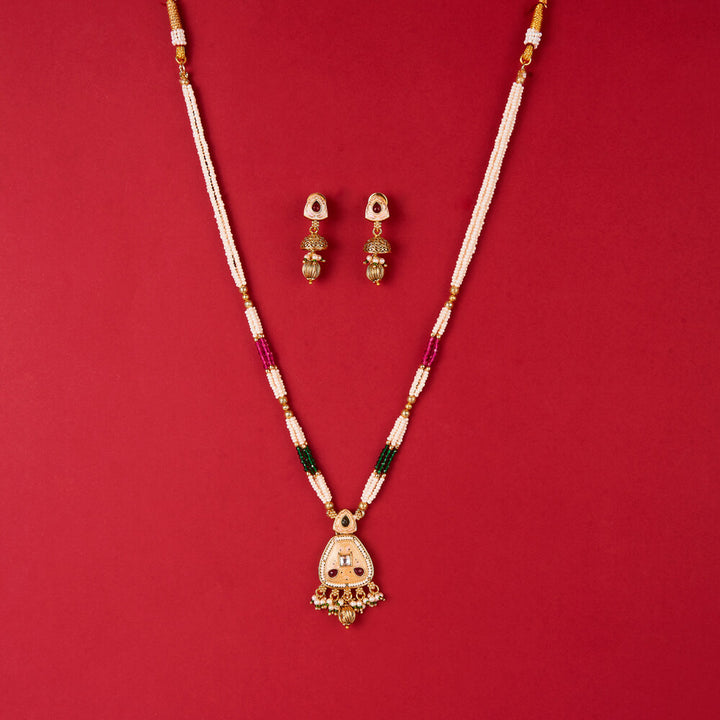 225673 Antique Pearl Pendant Set With Matte Gold Plating