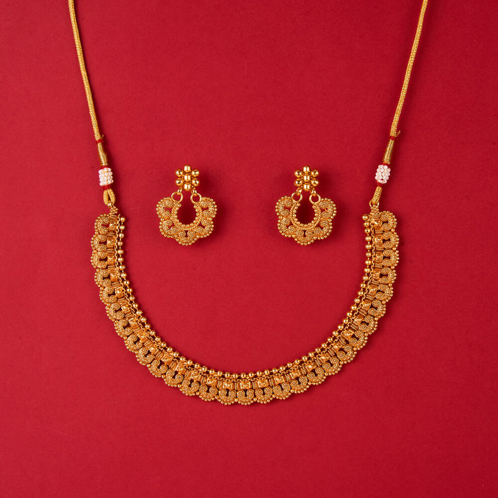 Weight: 49.0 Grams, Earring Height = 35 mm || Width = 27 mm,Regular Size And Adjustable,Classic Necklace,Gold Plating,Antique Necklace Set