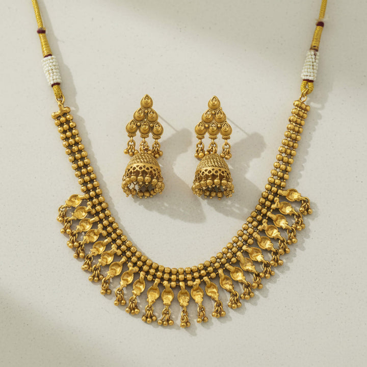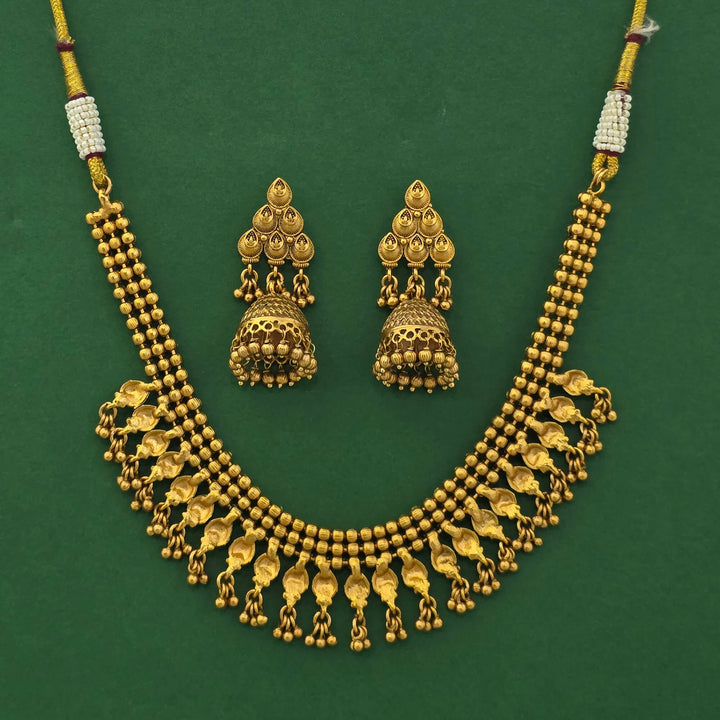 229328 Antique Plain Matte Gold Necklace Set With Matte Gold Plating