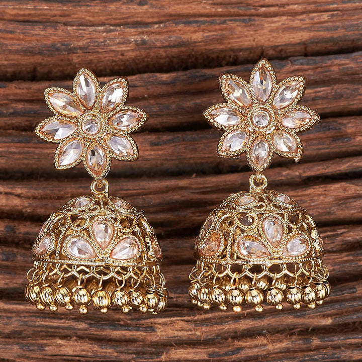213911 Antique Reverse Ad Stone Earring With Mehndi Plating