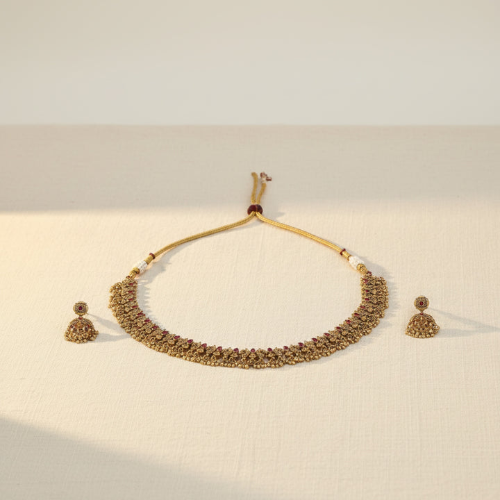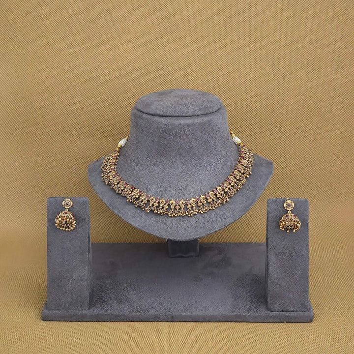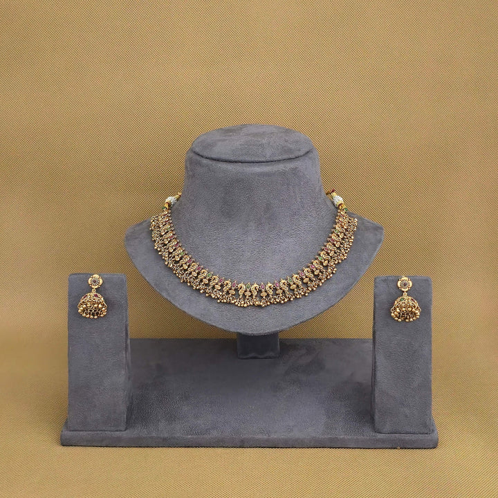 Weight: 54.0 Grams, Earring Height = 27 mm || Width = 20 mm,Regular Size And Adjustable,Peacock Necklace,Gold Plating,Antique Necklace Set