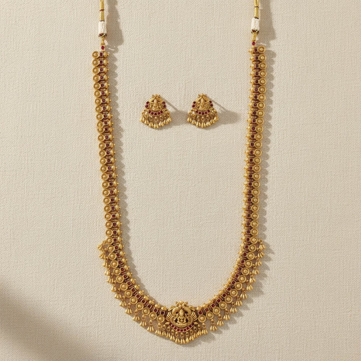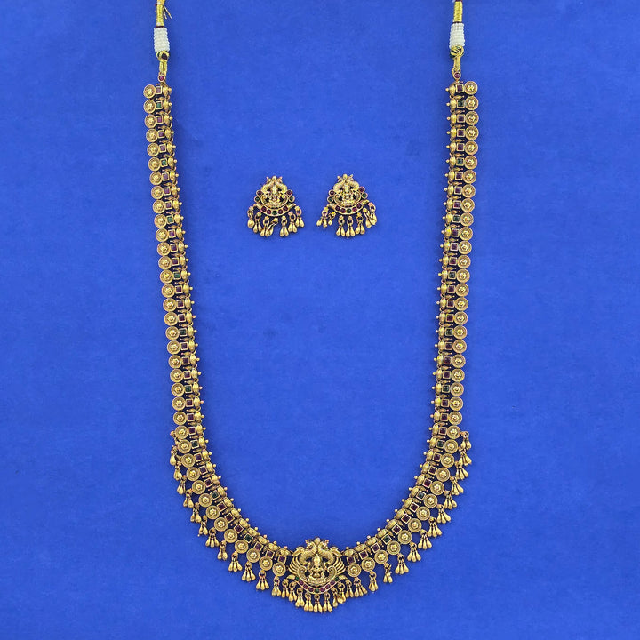 Weight: 150.0 Grams, Length = 20 Inch,Earring Height = 33 mm || Width = 30 mm,Long Necklace,Matte Gold Plating,Antique Necklace Set