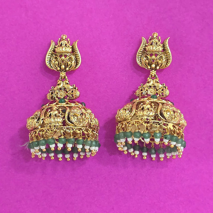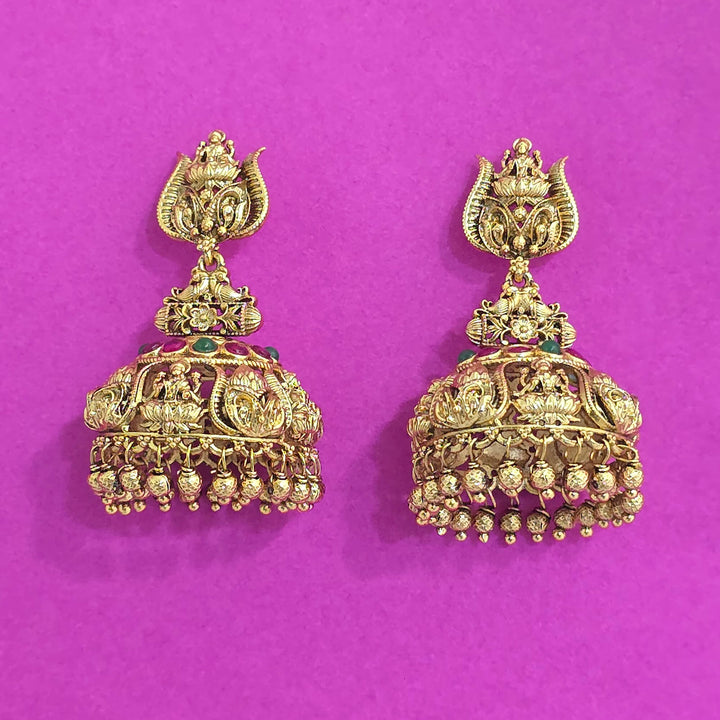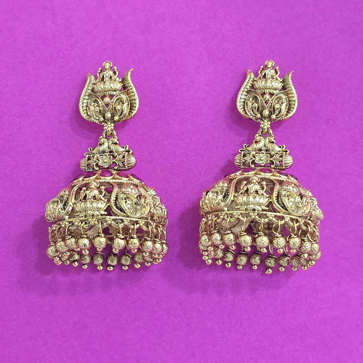 Weight: 29.0 Grams, Height = 50 mm || Width = 30 mm,Temple Jhumki,Matte Gold Plating,Antique Earring