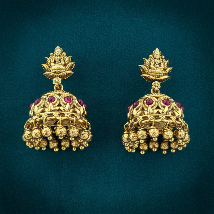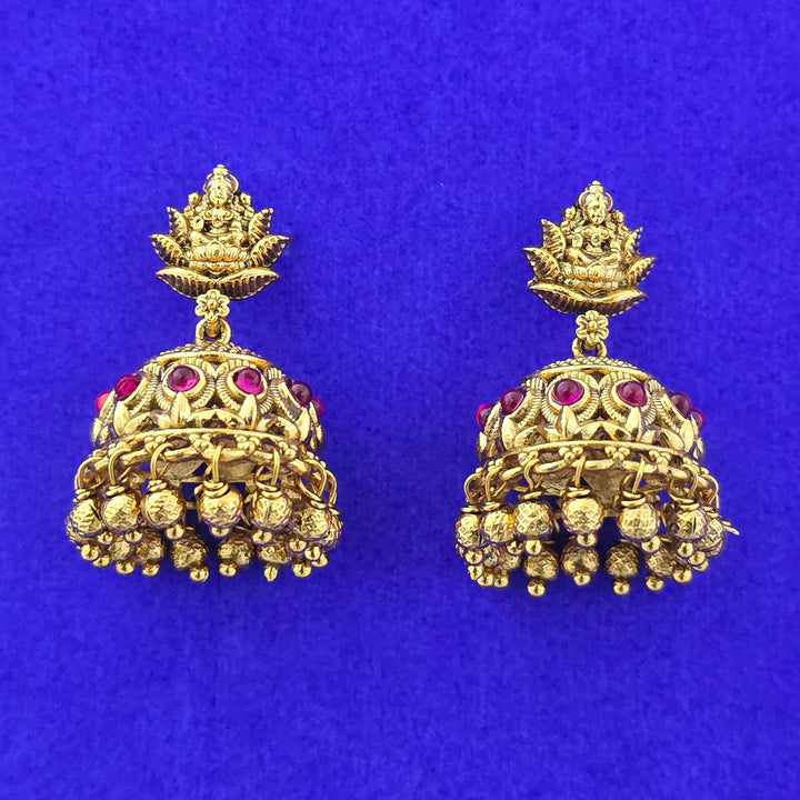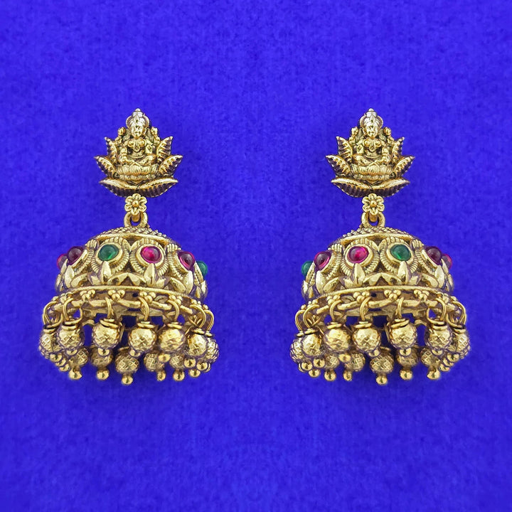 Weight: 14.0 Grams, Height = 30 mm || Width = 22 mm,Temple Jhumki,Matte Gold Plating,Antique Earring