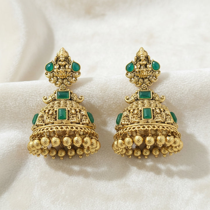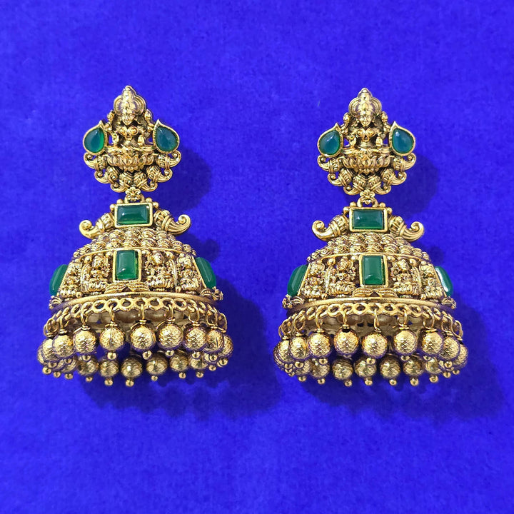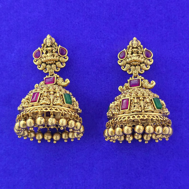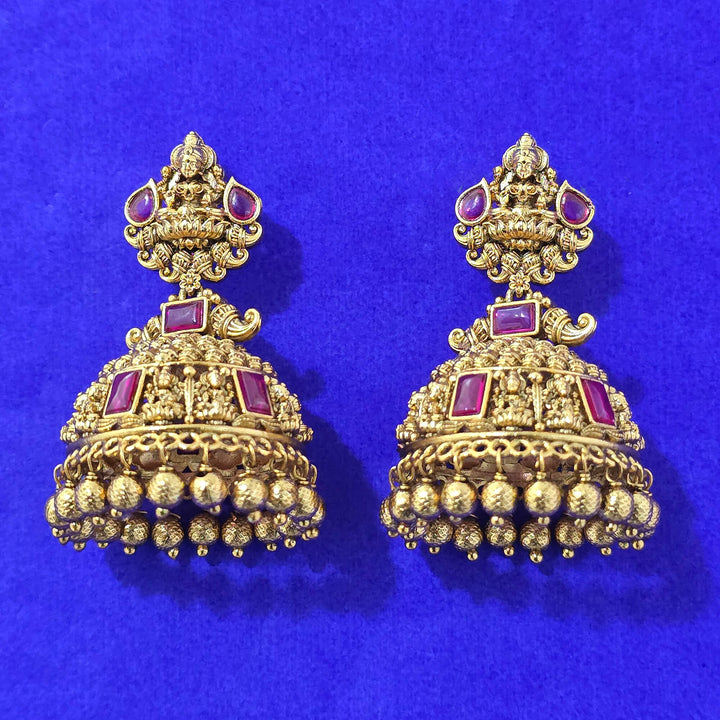 Weight: 36.0 Grams, Height = 50 mm || Width = 35 mm,Temple Jhumki,Matte Gold Plating,Antique Earring