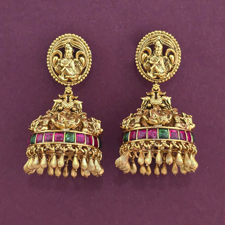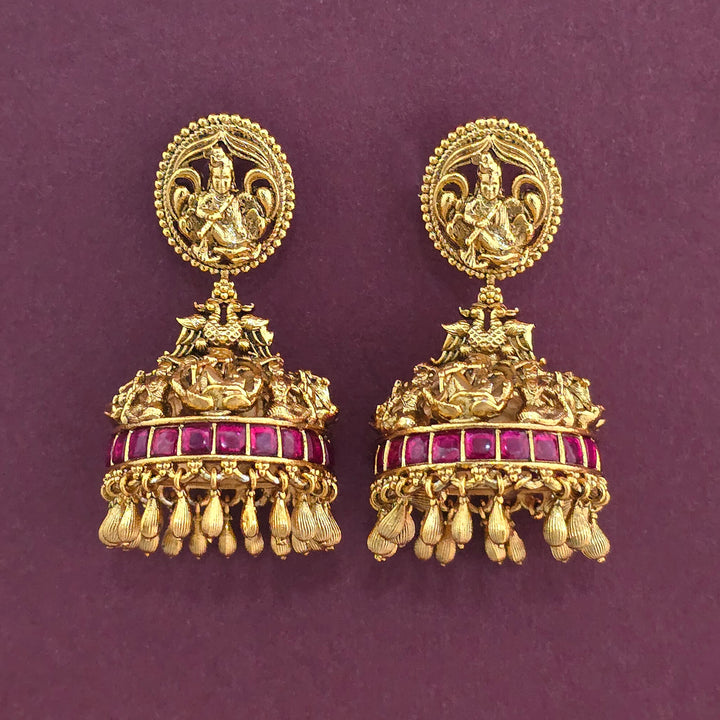 228856 Antique Temple Earring With Matte Gold Plating