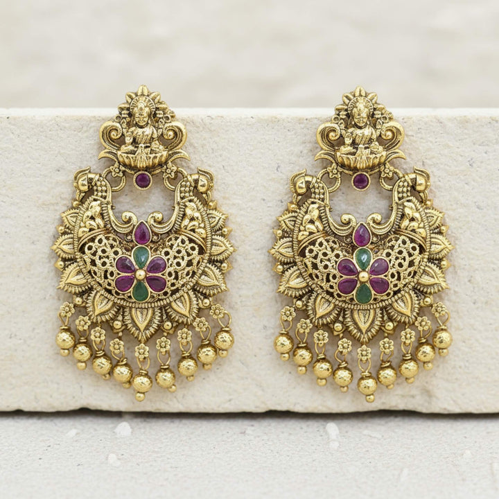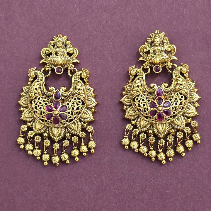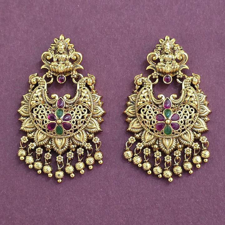 Weight: 19.0 Grams, Height = 45 Mm || Width = 28 Mm,South Indian Earring,Matte Gold Plating,Antique Earring