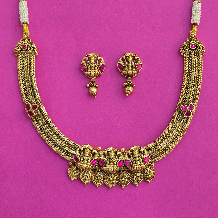 227276 Antique Temple Necklace Set With Matte Gold Plating