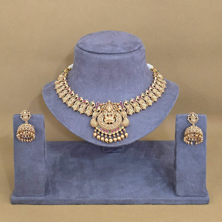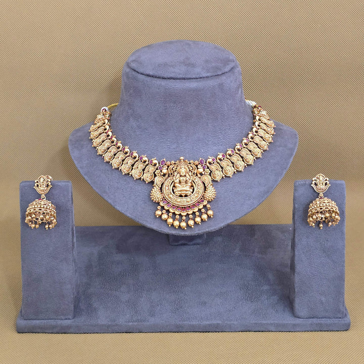 228551 Antique Temple Necklace Set With Matte Gold Plating